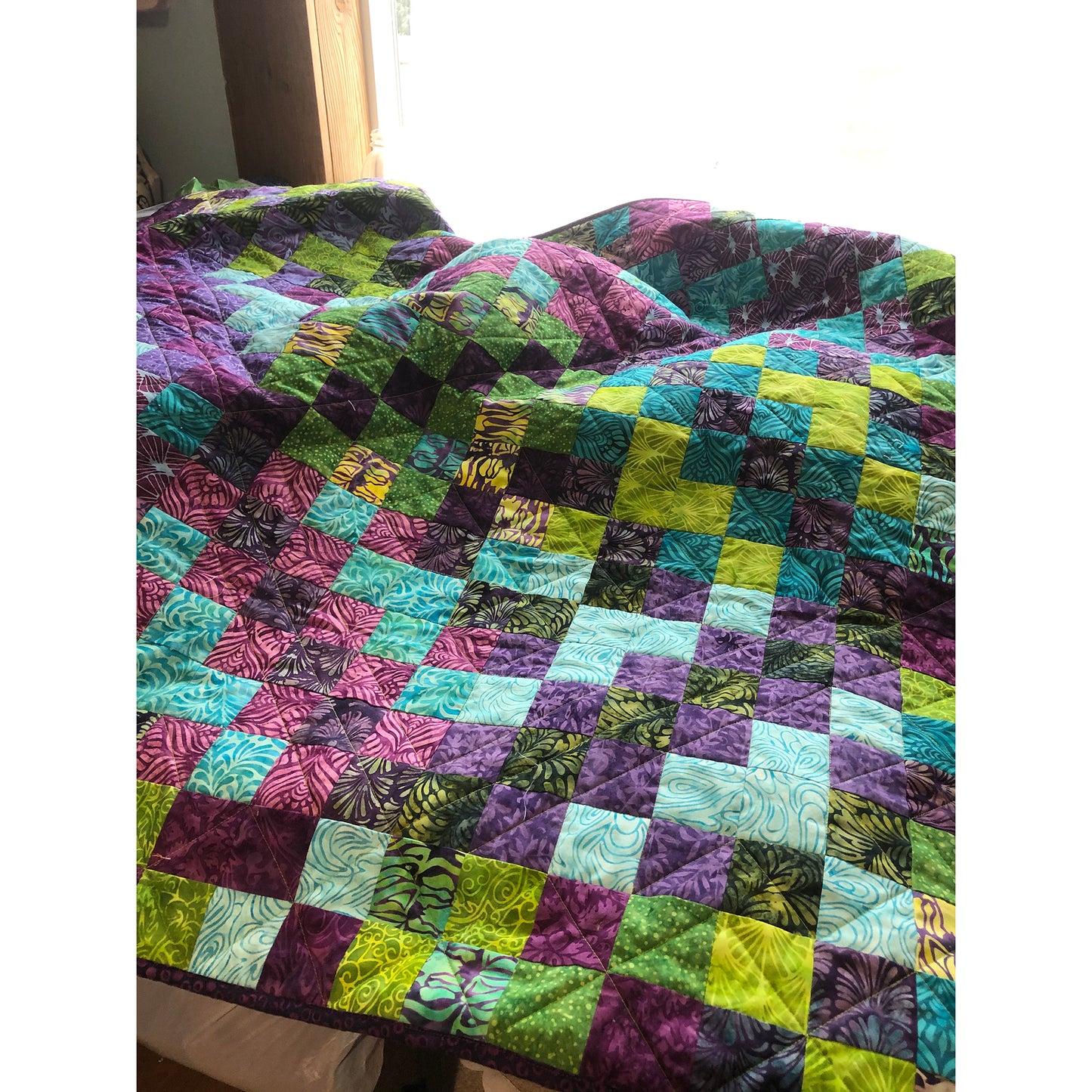 Use 2 ½ inch strips of fabric in light, medium and dark values to create a scrappy quilt in a variety of sizes. Perfect for scraps or use coordinating strips purchased in a pack. This looks wonderful in brights, or pretty florals as well. This is an easy quilt that uses strip piecing and fast cutting techniques to make a scrap style quilt. You will learn how to use light, medium, and dark values to create contrast in this quick to sew project.