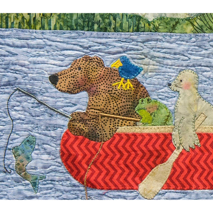 How cute are these whimsical characters paddling their way down the stream, trying to nab a couple of fish on the way. This wall hanging would be a perfect addition to a cottage, a child's room, a gift for a fishing or boat enthusiast.