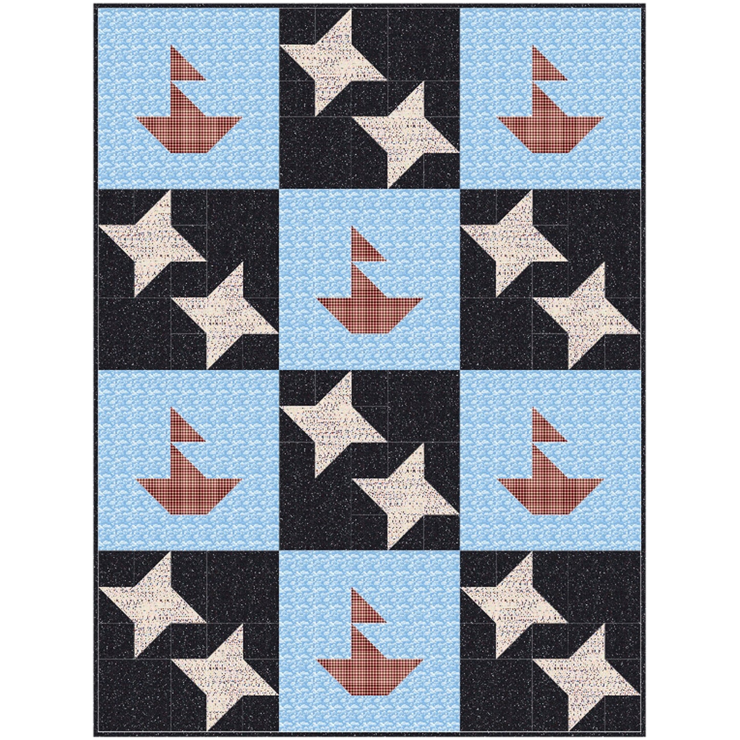 Pieced sail boats and star blocks quilt pattern. Includes instructions for two versions.