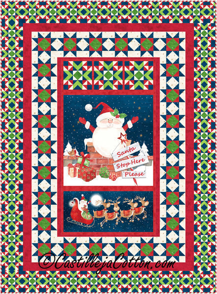 Fabric shown in sample quilt is Northcott Fabrics Santa Stop Here. (Available 2020-08-01)