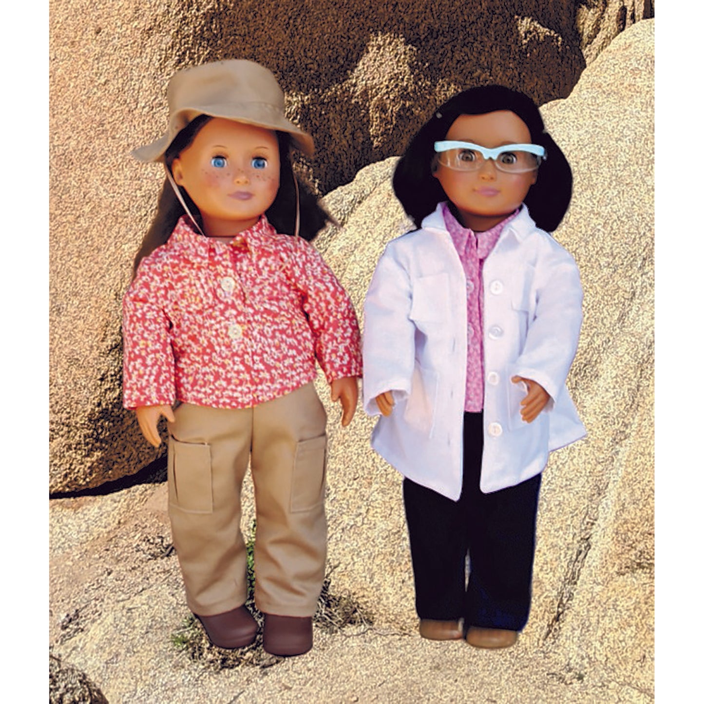 Do you have a future scientist or geologist in the house? Help encourage our children to follow their dreams. The sky’s the limit!Doll clothes are sized to fit American Girl and other 18" dolls. The scientist includes a lab coat, shirt, and pants. The geologist includes a shirt, pants, and hat.
