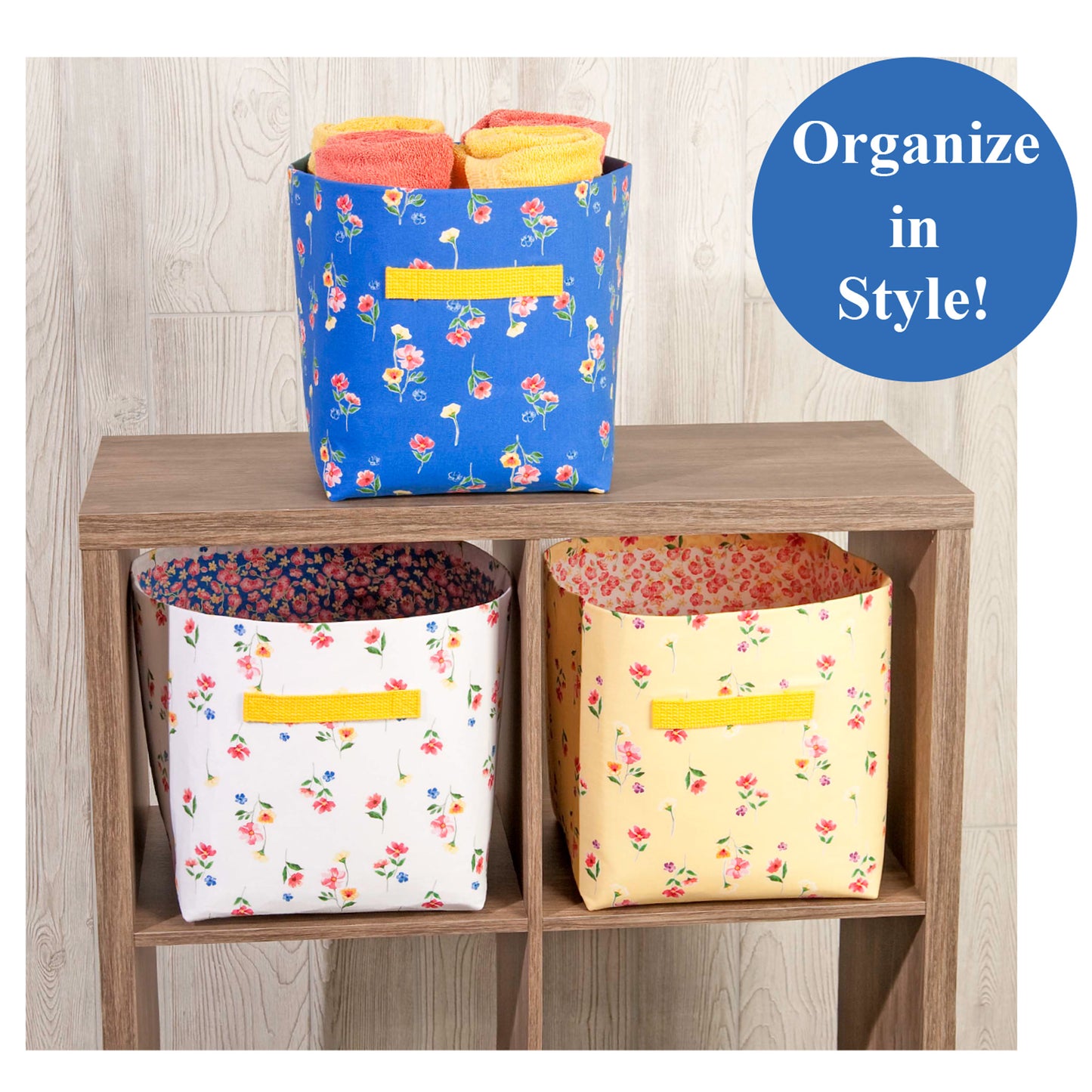 Make one of more of our Sew Organized Fabric Bins and organize your sewing room, or any room in your home, with designer Fabric Bins! 10" x 10" x 10" Bin fits standard cube organizers, or sits on a shelf. Our Sew Organized Fabric Bins can be made in any color palette – to coordinate with any room in your home!
