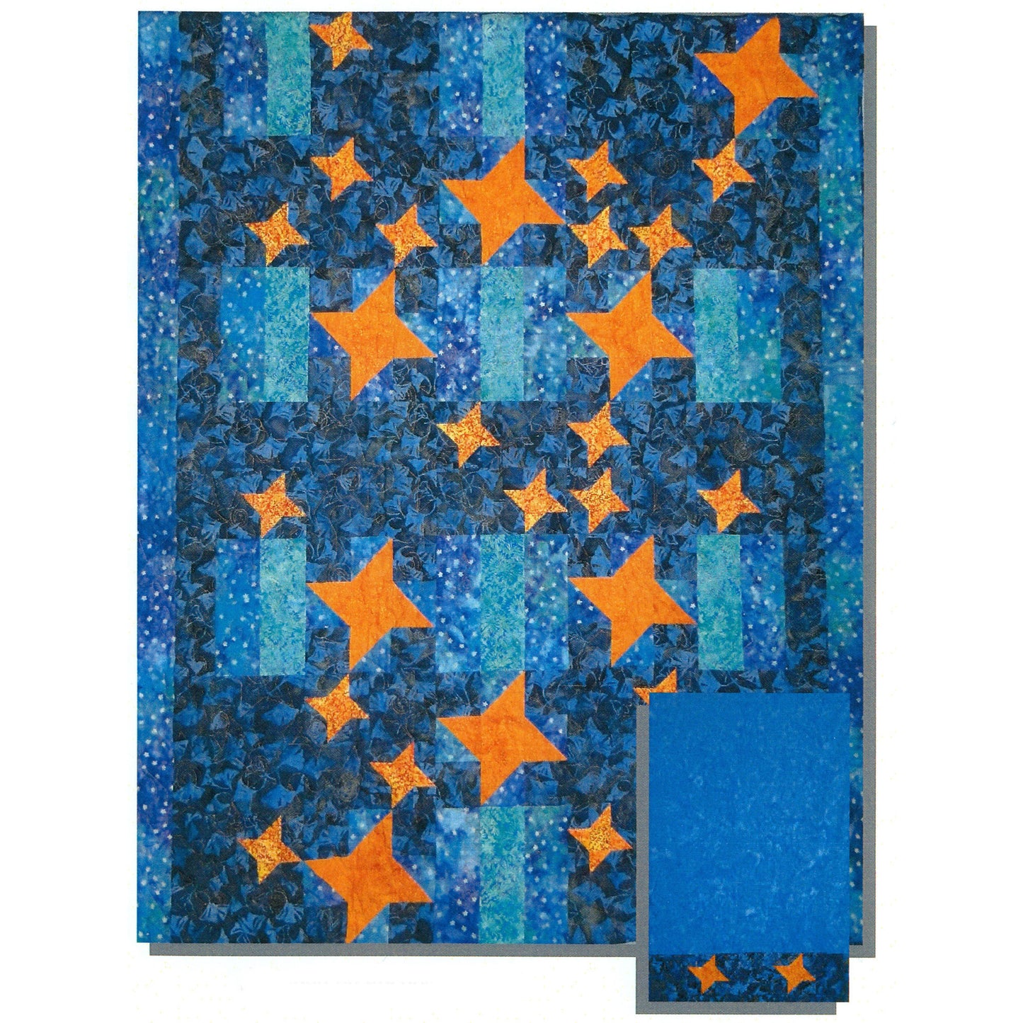Create your own starry sky quilt with easy strip-pieced blocks and half-square triangle stars! Quilt pattern includes a bonus pattern for a pillowcase.