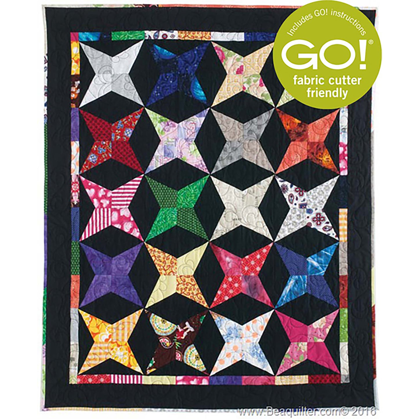 Scraps and solid black makes a fun kite quilt. Blocks can be made using the Kite dies from the 8” QUBE set from Accuquilt (or Kite die #55254) or use templates provided. Yardage also provided for other QUBE/ Kite sizes! Pieced quilt pattern. Pattern includes instructions for two sizes.