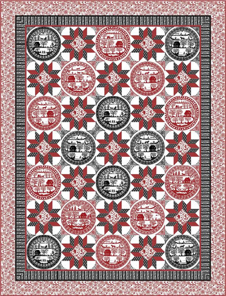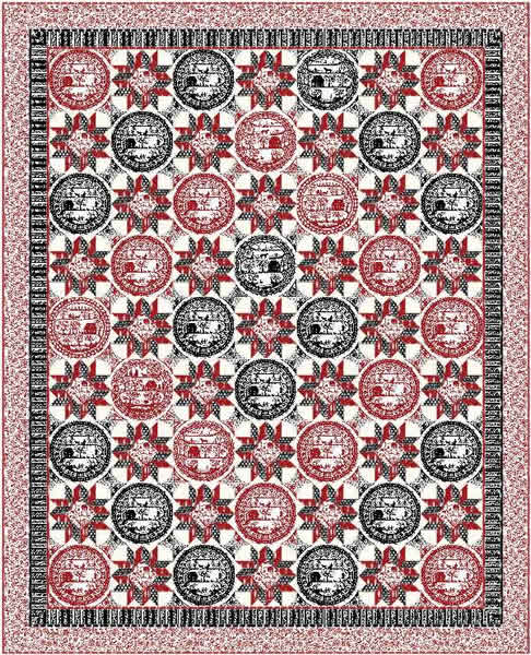 This quilt pattern is designed to showcase pre-printed 12" blocks in four different sizes from runner to queen size.