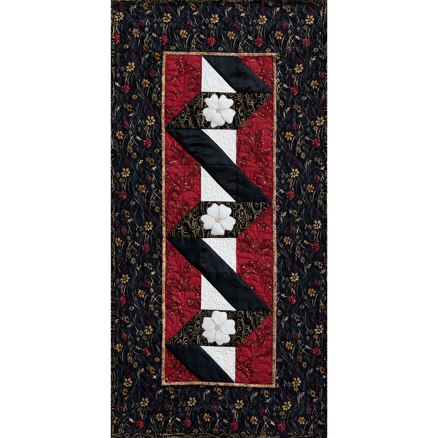 The simplicity of a cherry blossom is echoed on a cascading ribbon in this Asian-inspired wall hanging or table runner. The Simplicity Table Runner Pattern has bold, clean lines and strong colors to create a striking background for the blossoms and add simple beauty to your wall or table.