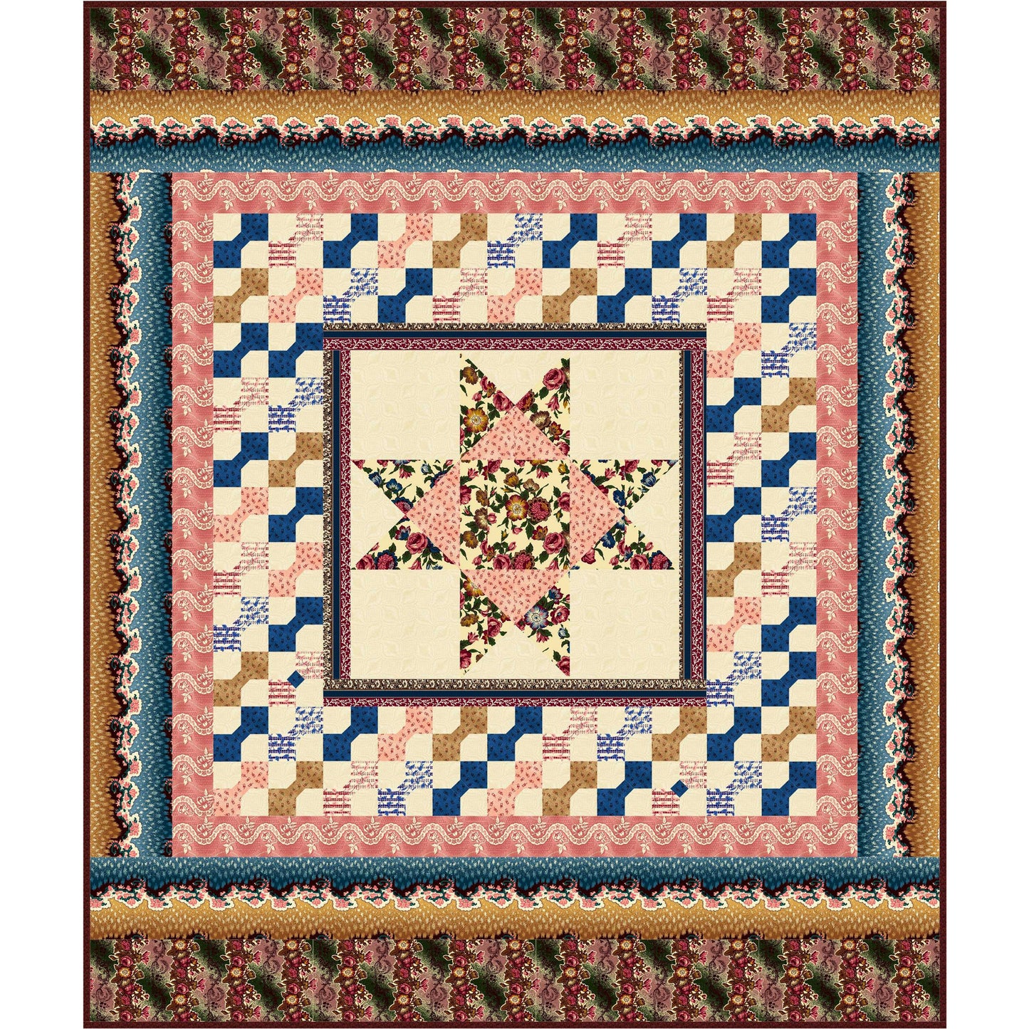 Quick pieced medallion quilt pattern that will bring a hint of country flair to any room. Fabric shown in the sample is Merchant's Wife by RJR.