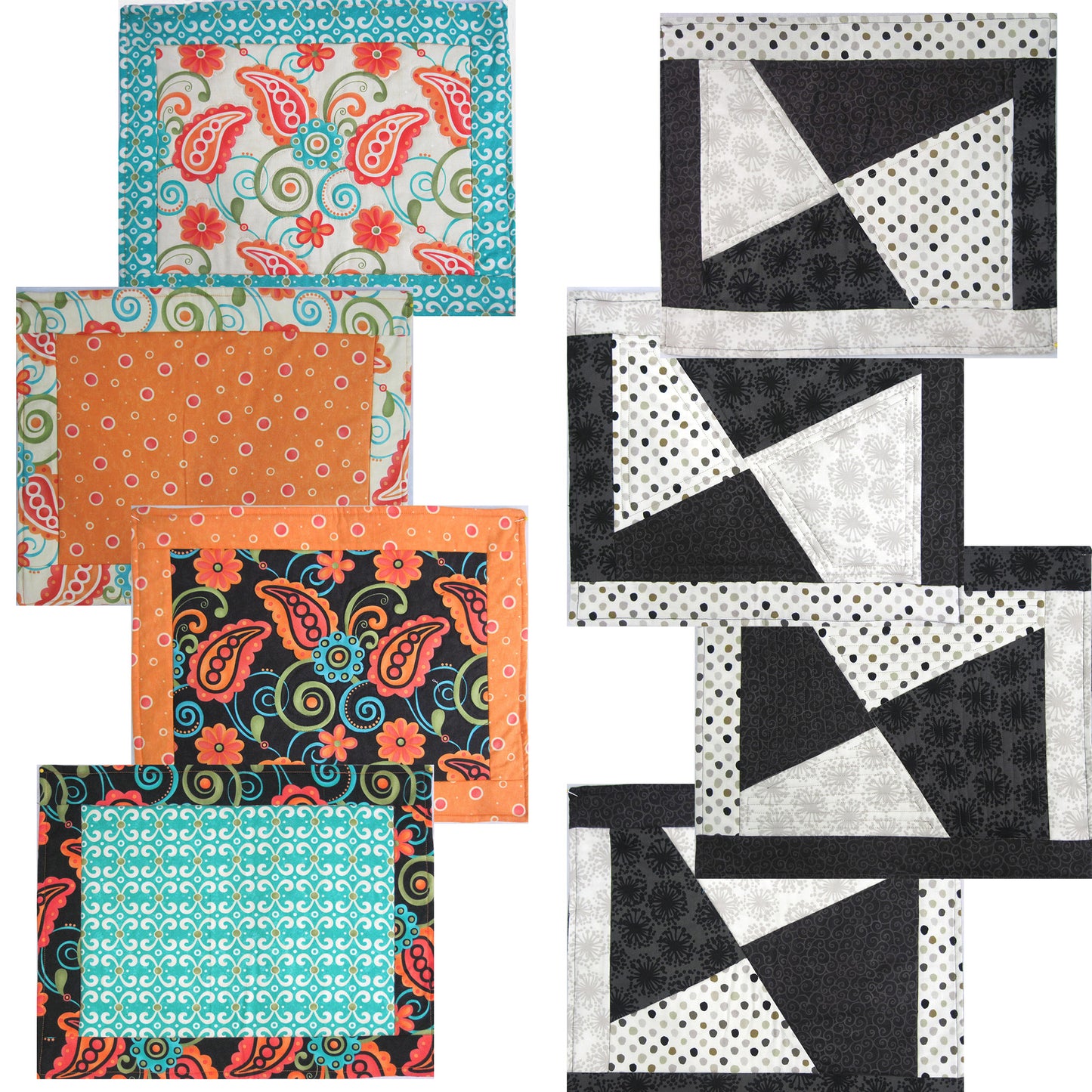 This is a quick and easy pattern! Using four Fat Quarters and your rotary cutter, do some slicing and dicing and make four placemats. A bit more fabric supplies the backing and coordinating napkins. This project can be completed in a few hours! This home decor pattern makes a great last minute gift for someone (including yourself!). Great for a Make and Take workshop!