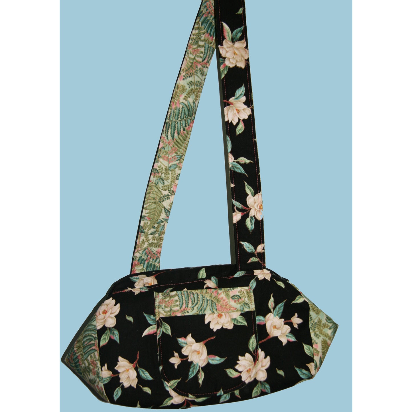 The Snap and Go Bag quilt pattern by Brenda Wineman of "Quilt With Me" makes a cute and efficient shoulder snap bag. It has pockets to keep you organized and can be made casual or dressy. It opens fully so that you can see everything with ease. The snap closes completely so your things inside do not fall out. The shoulder strap makes for easy, one hand, entry.