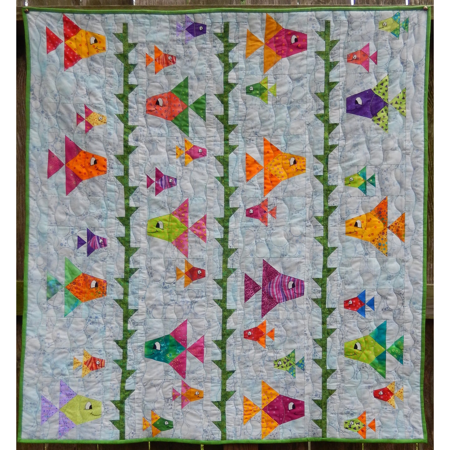 There's something fishy going on around here! This 40" by 42" quilt pattern features fun foundation paper pieced fish, swimming amongst the precision-pieced kelp. A bit of applique and embroidery make the fish faces completely fabulous! Wouldn't this make a great gift for the new baby?