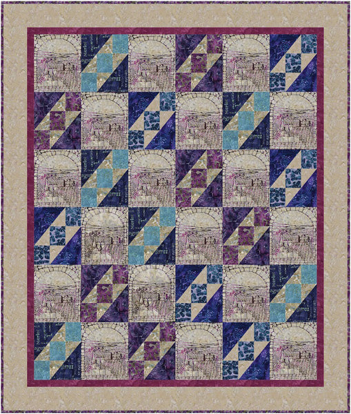 One block, 3 design options for a generous lap quilt featuring a modified Road to California block. Combine it with a themed border stripe and mini panel block (option #1), mini panel blocks (option #2) or on its own in different color combinations (option #3).