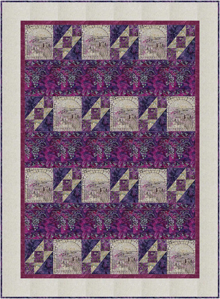 Sample quilts feature the Tempranillo colorway of Vino by Banyan Batiks for Northcott.