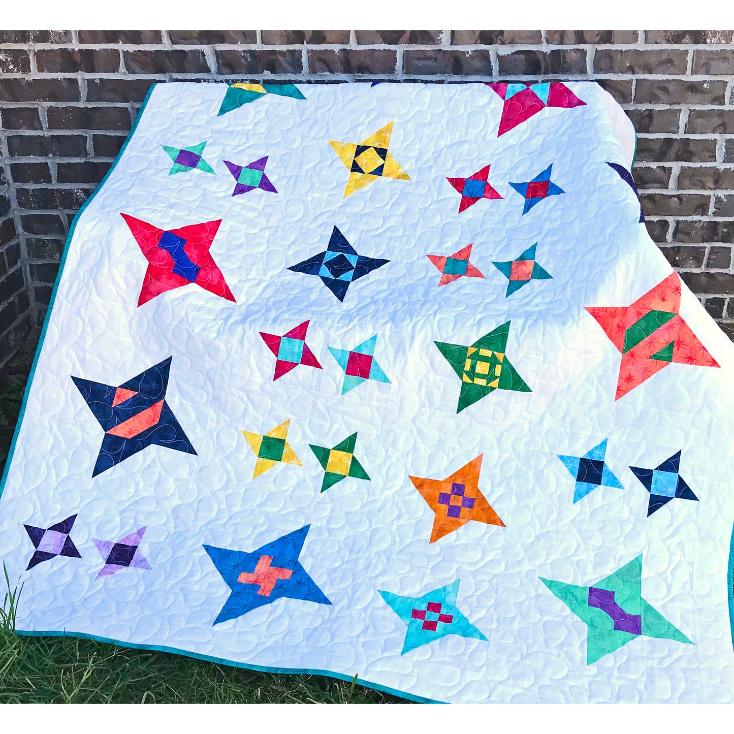 Star Gazing is a sampler quilt pattern with a modern twist on the traditional Friendship Star quilt block. Stars are set in three sizes using different center blocks for a fun and creative sampler quilt. Fat quarter and beginner friendly! Pattern includes fully illustrated diagrams with easy to follow instructions. Suitable for any level quilter.