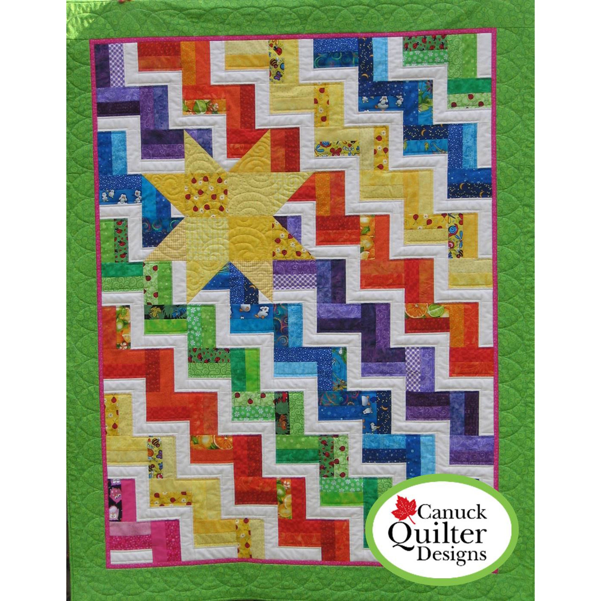 Quickly piece this bright, cheerful quilt pattern. The star adds a wonderful focus point to a simple quilt and is surprisingly easy to add. Make a generously sized baby "tummy time" quilt or toddler quilt, or choose a completely different palette to create a throw or lap quilt for any age.