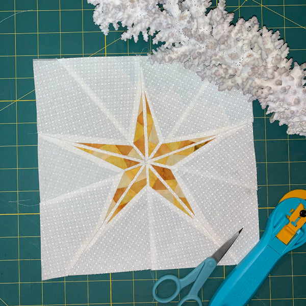 The Starfish - Origami Animals Collection is a Foundation Paper Piecing pattern that reproduces the figure of a Starfish created by the origami technique. It's the 6th and last pattern of the sea animals series of the collection, and it follows the Fish, the Seahorse, the Turtle, the Crab and the Whale. It includes the sections and cutting templates to create the Starfish in two sizes: 9" and 16.5". It is a pattern in a modern and casual style, with which you can create quilts, hanging quilts, pillows, bags and everything you can image.