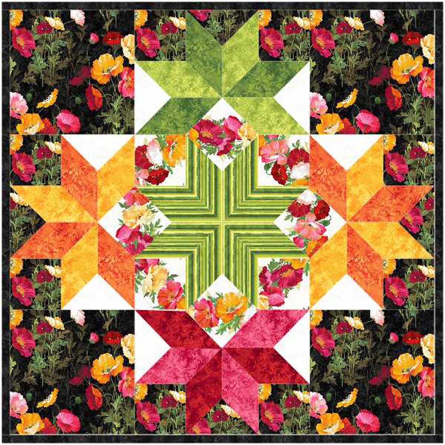 Starlight Poppies Quilt Pattern MGD-262e - Downloadable Pattern