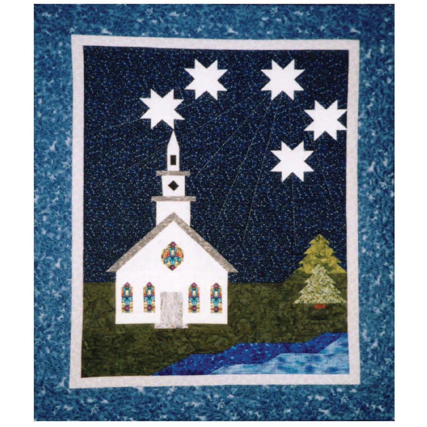 Pieced and appliqued country church with steeple and stars wall hanging pattern. Would make a great addition to your holiday decor.
