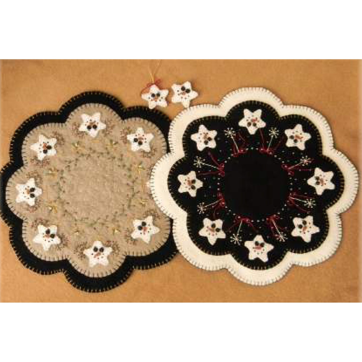 Two different looks from the same pattern! One for Winter, one for Christmas. Look closely...the Christmas stars have wings and halos! This pattern is very easy to make! The mats measure about 13 inches. They make great little gifts that you can stitch up in no time!