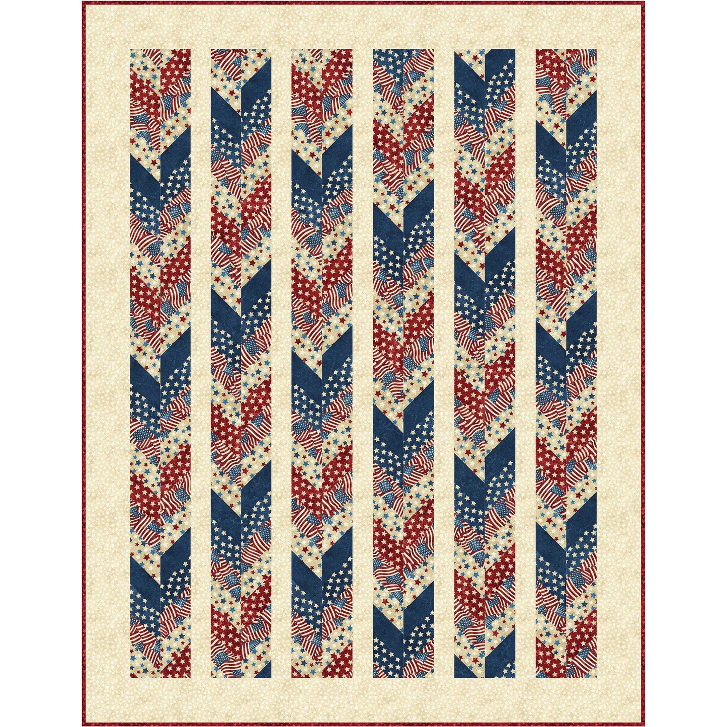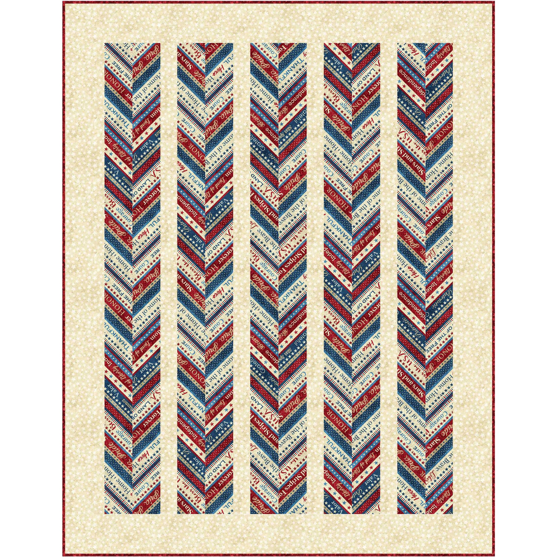 Use a STRIP-R fabric (pre-printed 2" strips) or a wide varied lengthwise stripe for the quilt center of this contemporary quilt to make it in a flash. The throw size fits the Quilts of Valor guidelines. Additional instructions included for a non-STRIP-R option.