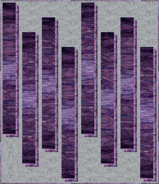 Showcase a show-stopping selvage-to-selvage ombre or large-scale non-directional print and combine with light and dark coordinates in this unique and quick strip quilt. Includes instructions for quick and easy machine binding.