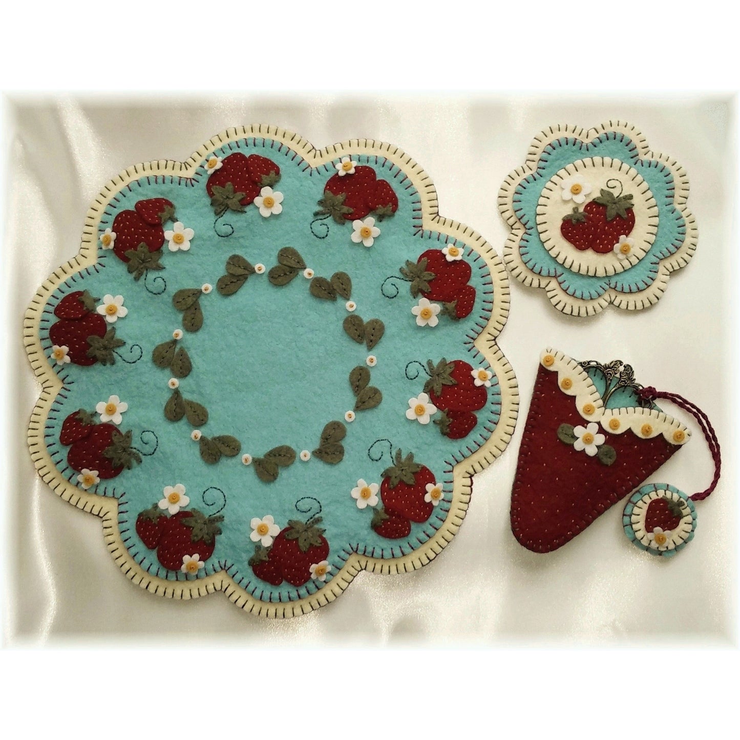 Colorful strawberries sweeten up this pretty pattern just in time for Spring & Summer decorating! Create these beautiful pieces using wool or wool felt.