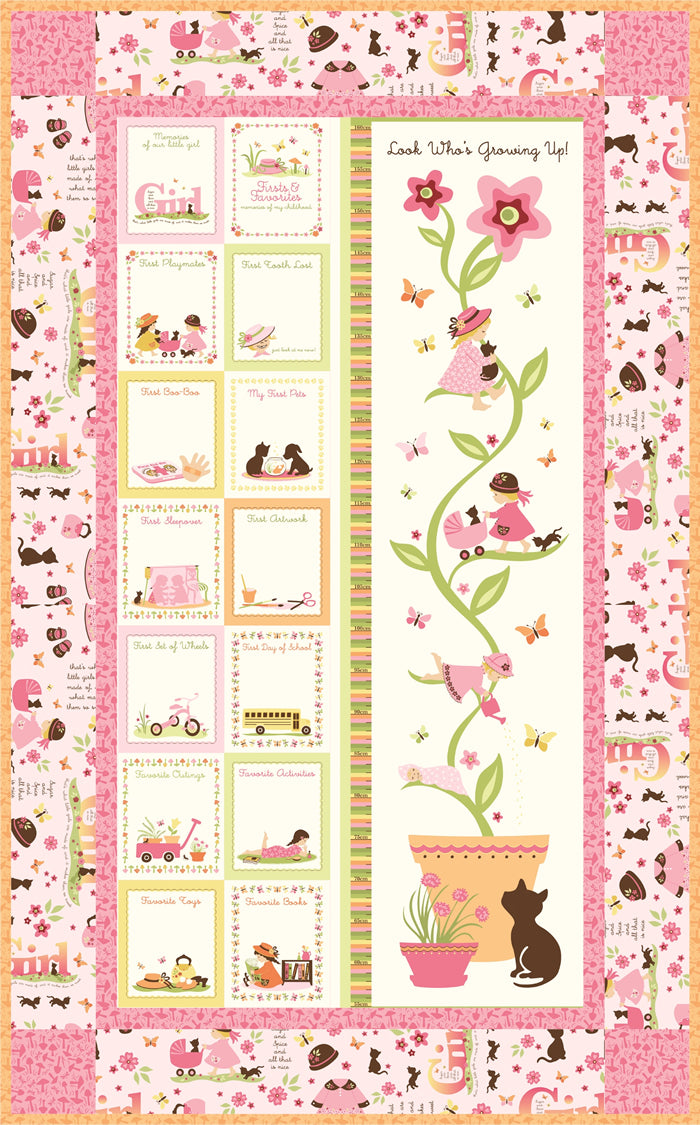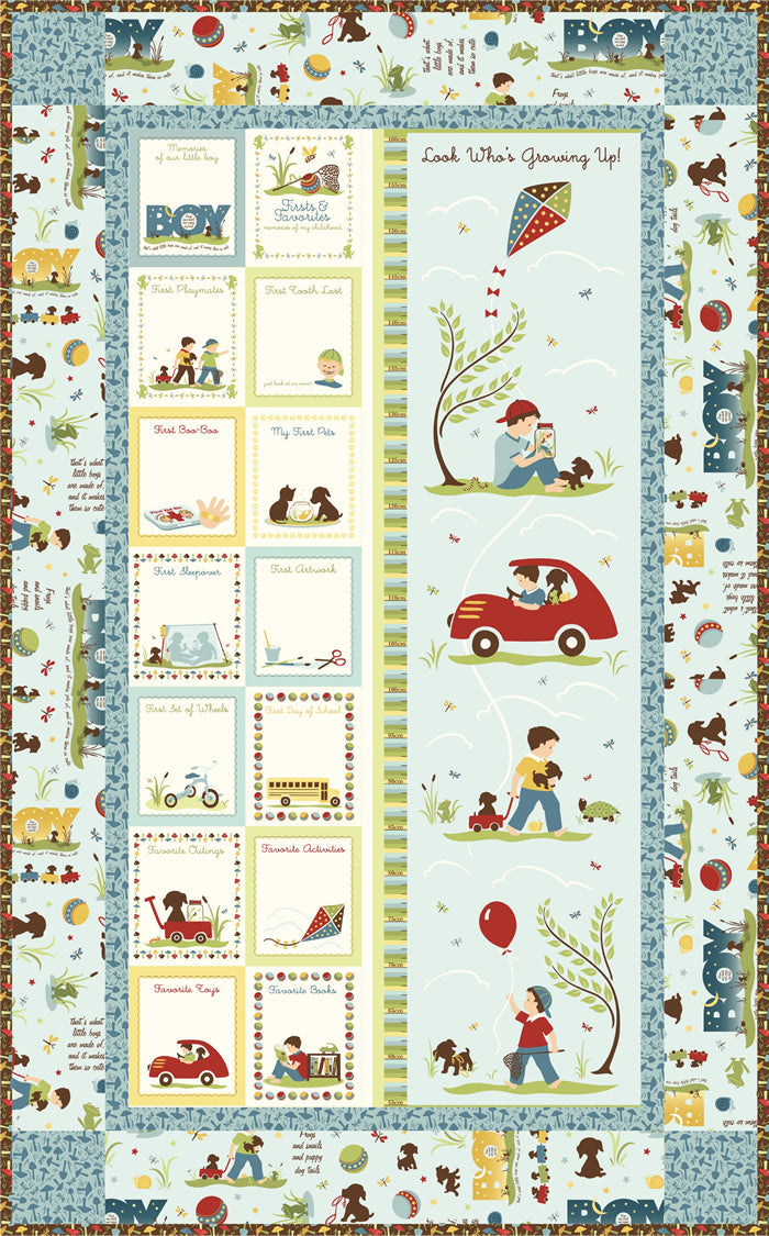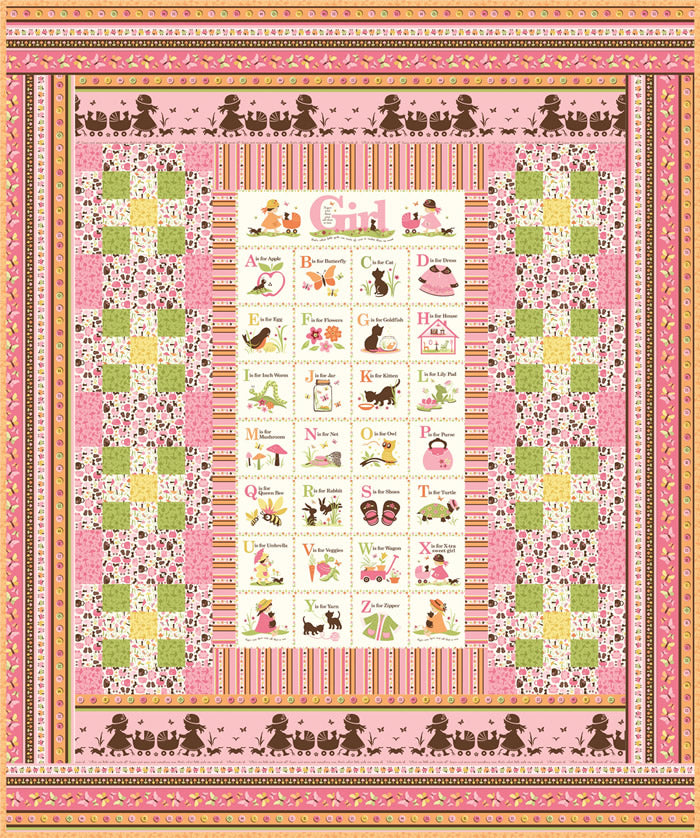 The Sugar & Spice Quilt Set features the delightful "Child's Play with Kate and Nate" collection designed by Sheri Berry, Northcott Silk.With a sweet alphabet silhouette quilt, an adorable growth chart to personalize and an easy set of tab top curtains, the set is designed to celebrate and grow with your special little one.