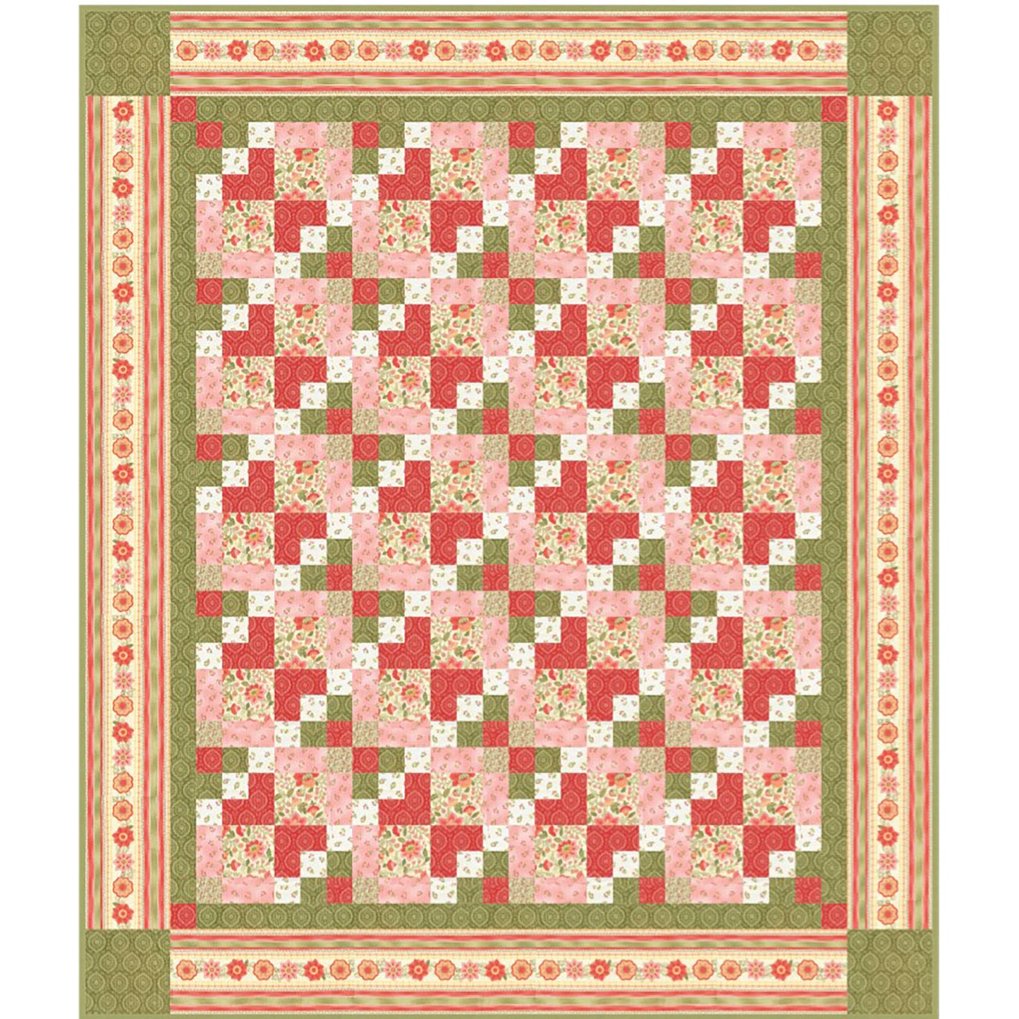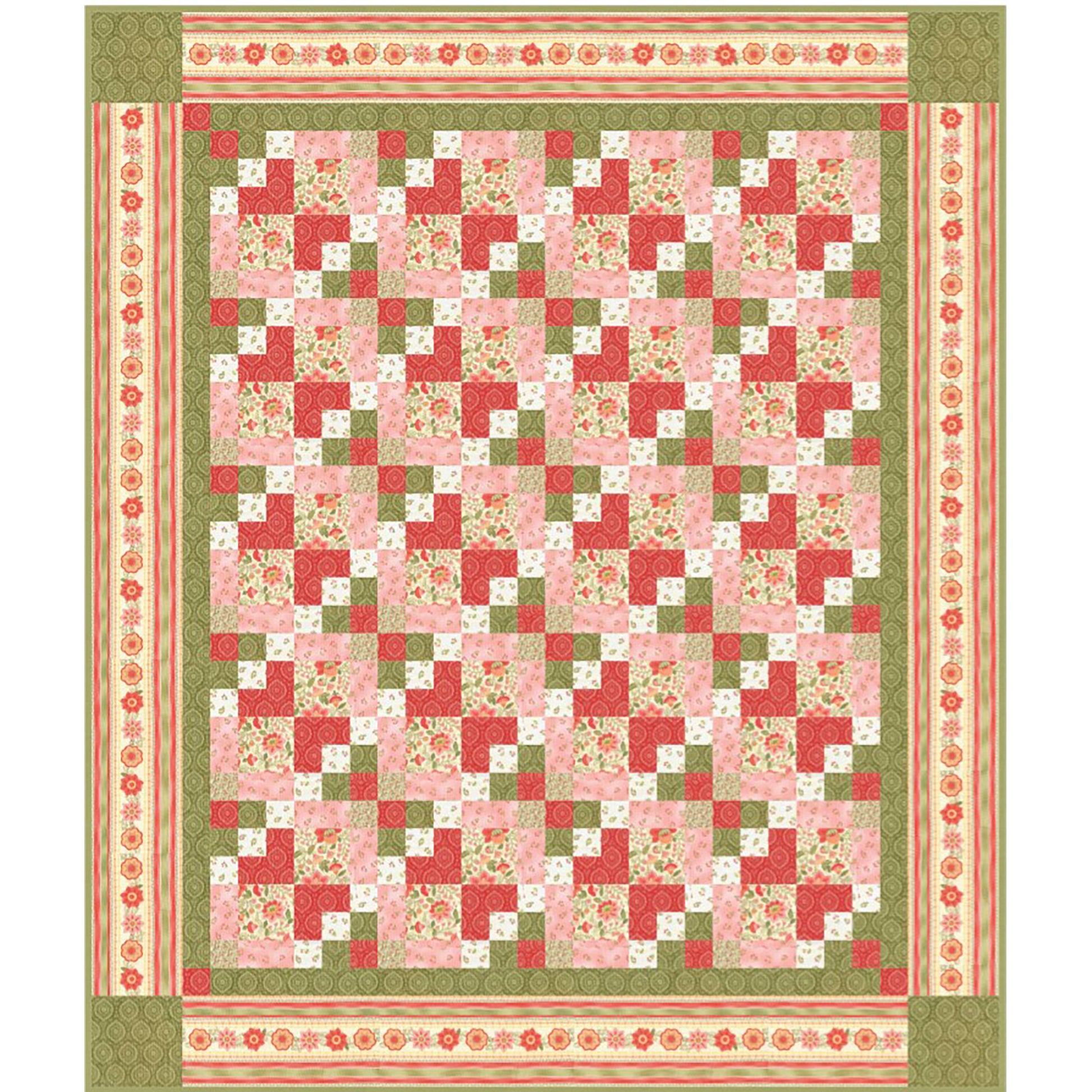 Quarter inch seams are used throughout this quilt pattern. This pattern is great for beginner and experienced quilters alike. Fabric line shown is Emma by Timeless Treasures.