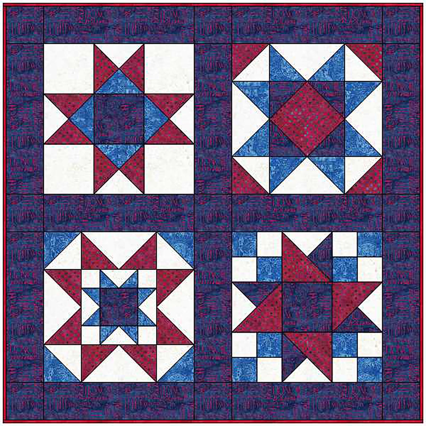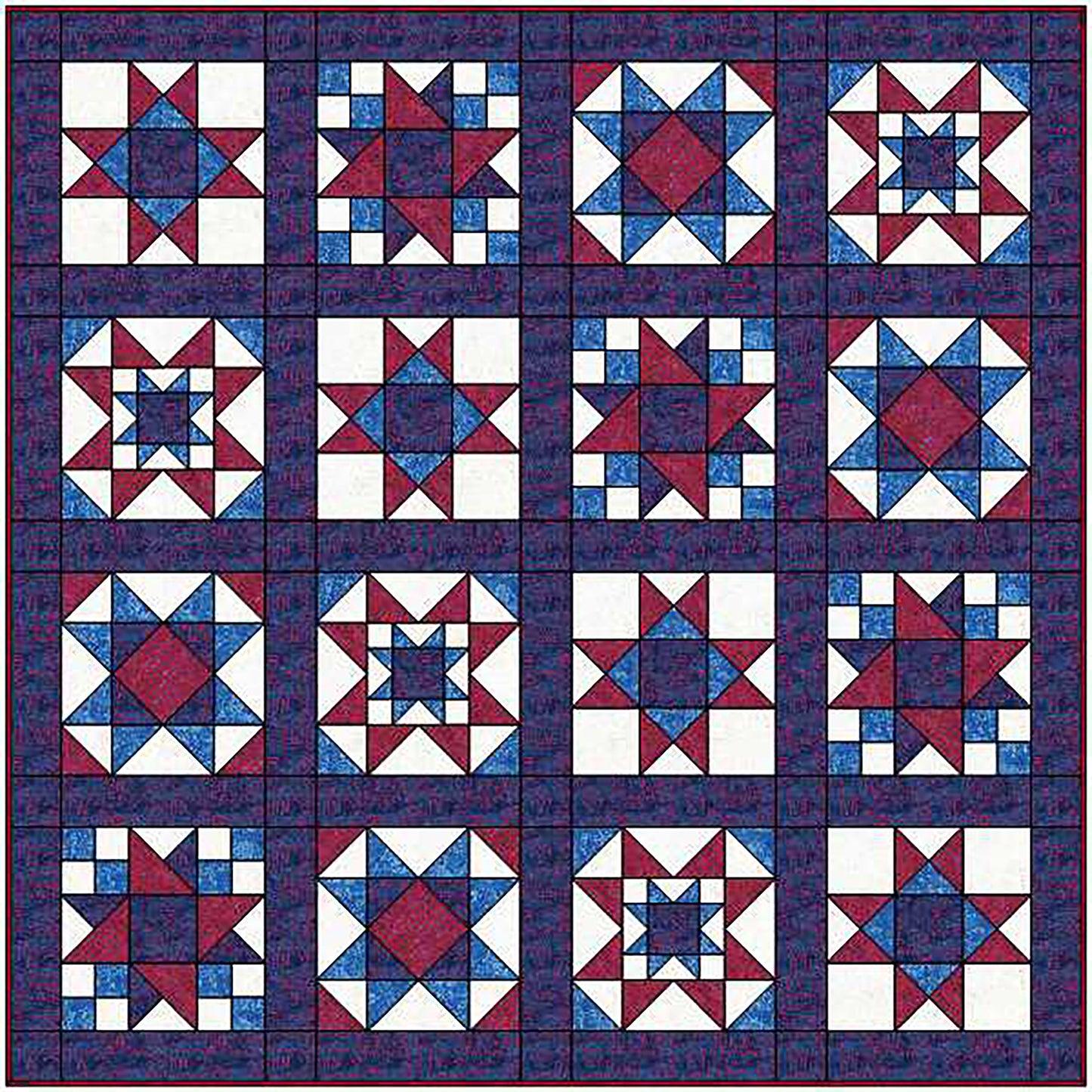 Fabric shown in the sample quilt is Sandy Salute by Henry Glass Fabrics.