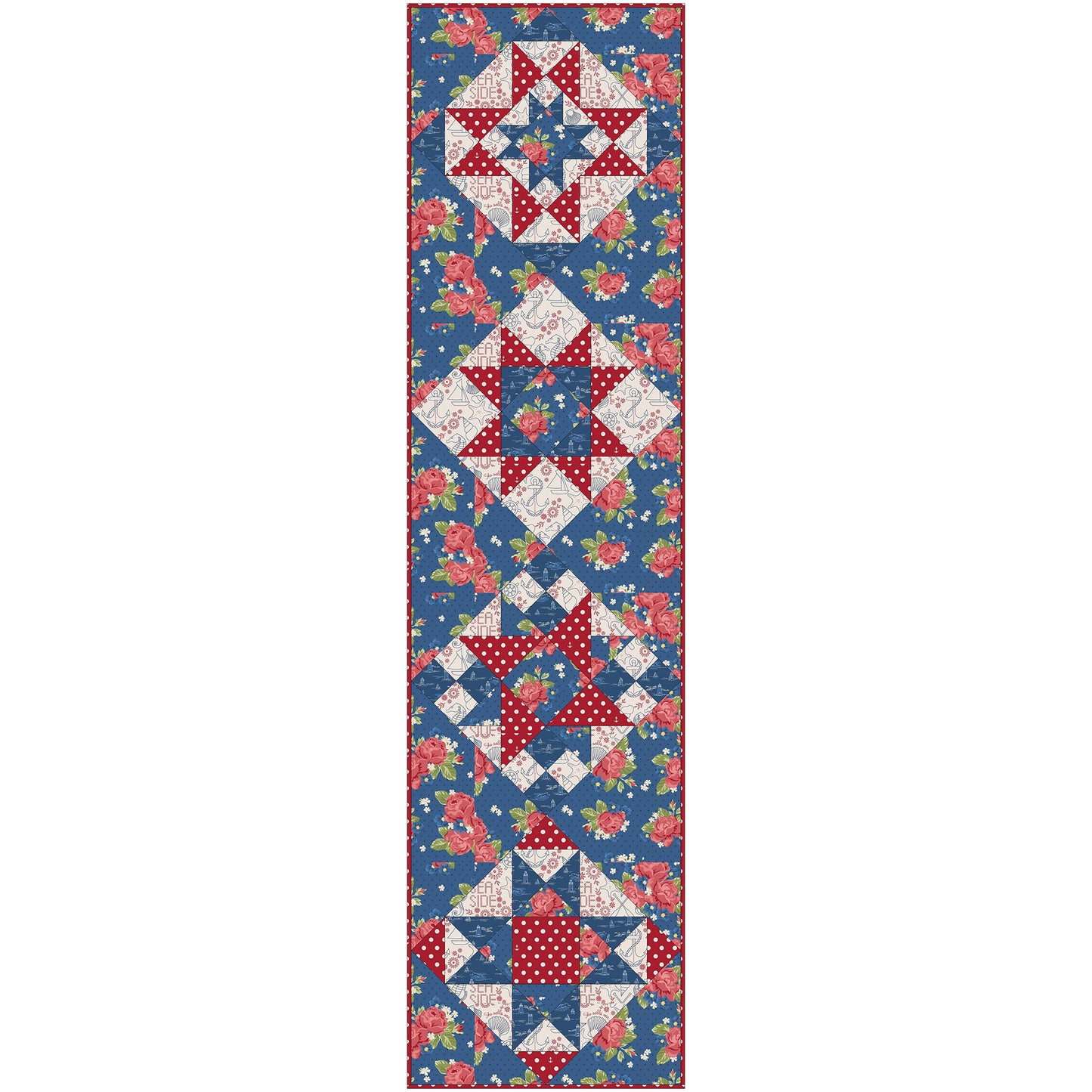 Summer Stars is a table runner originally designed as a short term block of the month. It features four quilt blocks and setting instructions for use as a table runner, wall hanging, or make four of each block to create a fun lap quilt. Each block is presented as a separate pattern. If you love star quilts this is a great project to make, and is so cute in red, white and blue!