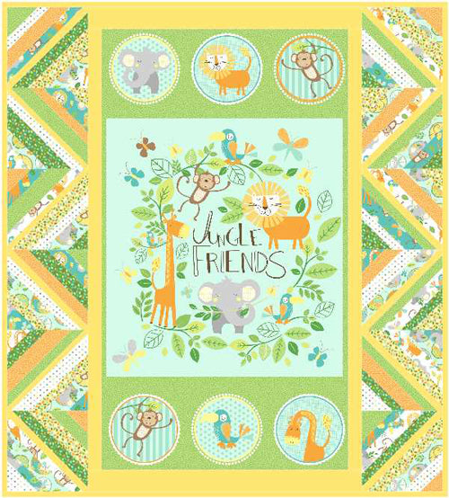 These quilts were made using the Jungle Friends line of fabric from Northcott, but you could easily use other fabric lines to make your own version.