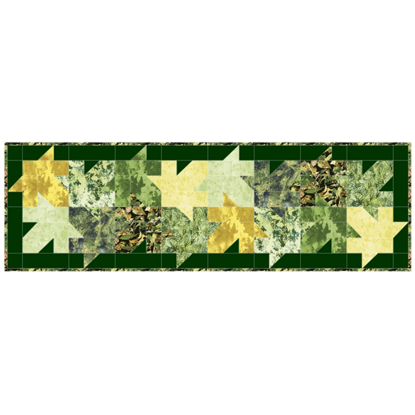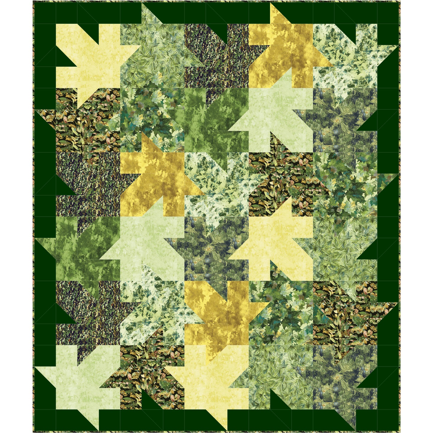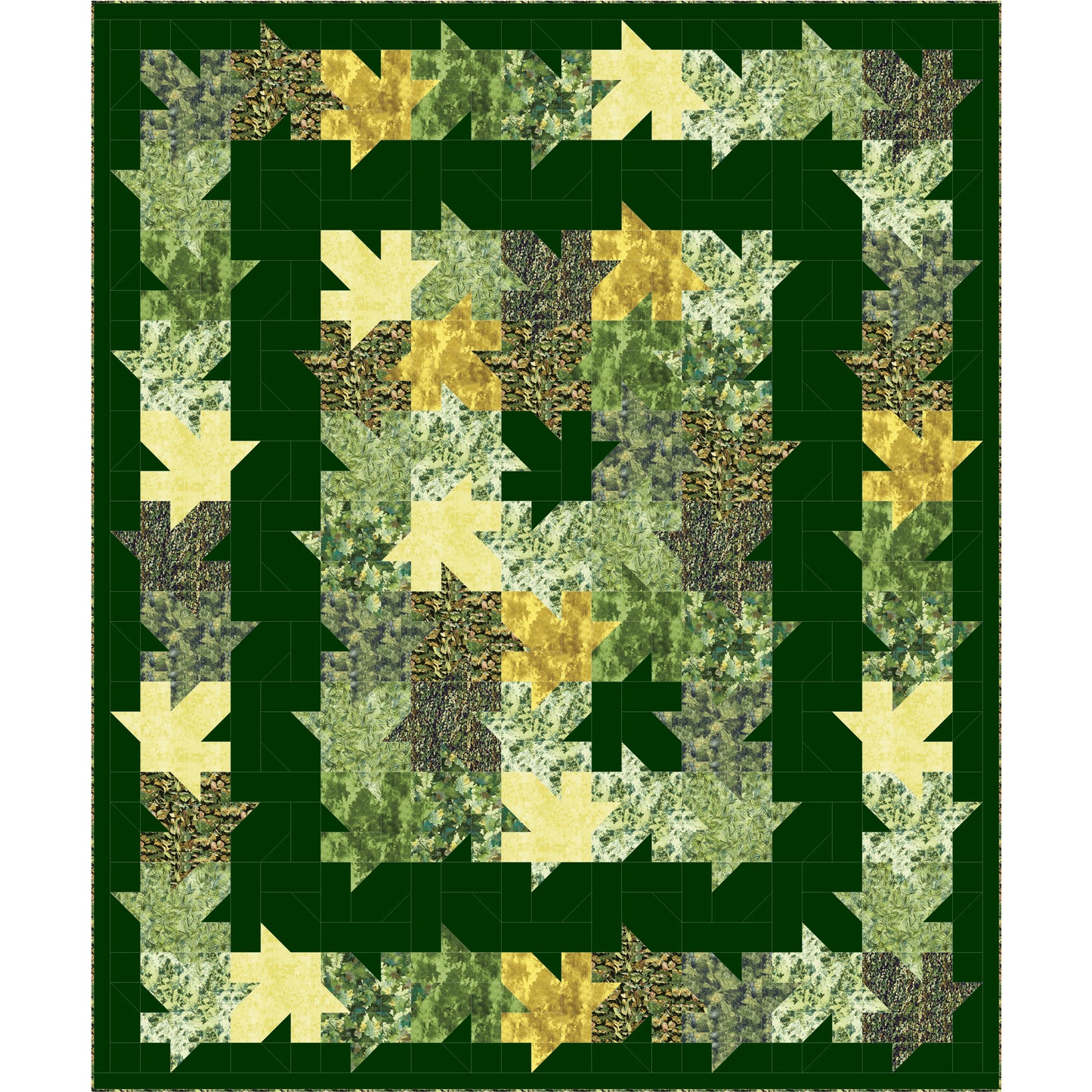 The Swirling Leaves Quilt Pattern creates this tessellating leaf quilt collection using leaf fabrics such as those in Northcott's Leaf Parade collection (as shown here). The pattern contains instructions for a table runner, lap quilt, twin sized quilt and a queen sized quilt.