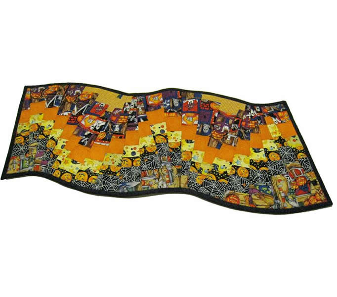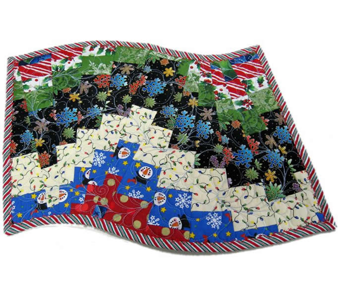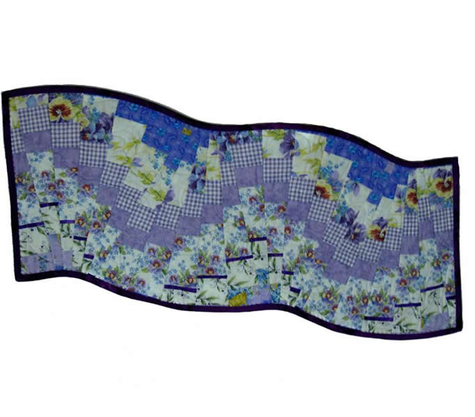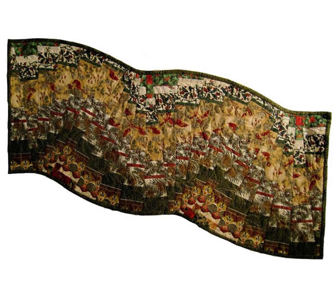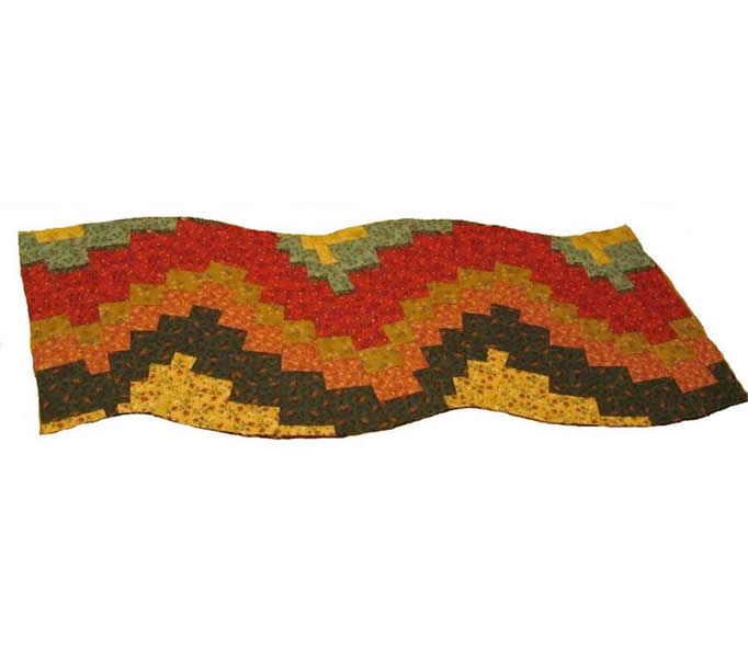Do not be intimidated by how these swirling table runners look finished - it's like "a slight of hands!" No seams to match, no curves to cut; just amazing results. This is a forgiving pattern. Make simple strip stratas and cut them with a 9 degree ruler. Use prints or solids or combinations - anything goes here. It's magically fun! Make the runners look as wonky as you want!