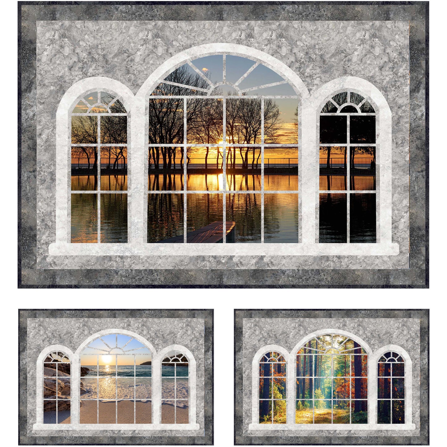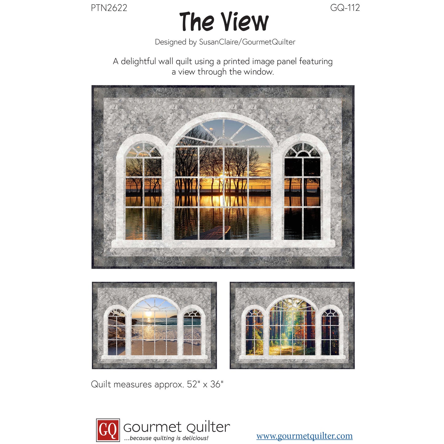 What an amazing view! Use your favorite panel to create this stunning window view wall hanging. There are 3 fabric panel options shown in the samples but any scenic panel would look stunning in this quilt. When completed the quilt measures approx. 52” x 36”.