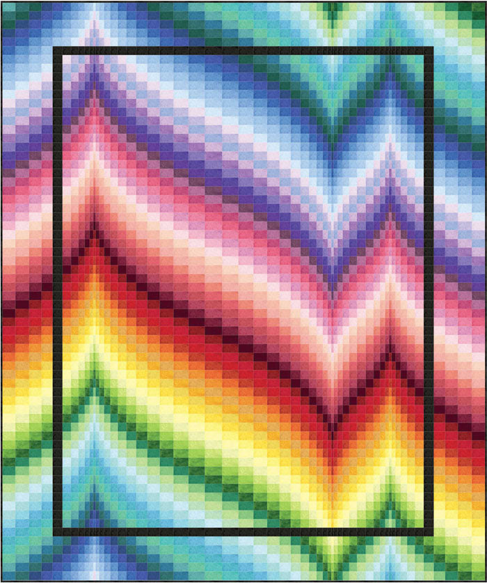 Northcott's Toscana suede-like texture, with its delicious gradation of values in a rainbow of colors, is perfect for this eye-catching bargello quilt pattern showcasing a rainbow of color! Choose Toscana or any other textured collection with at least 70 colors.