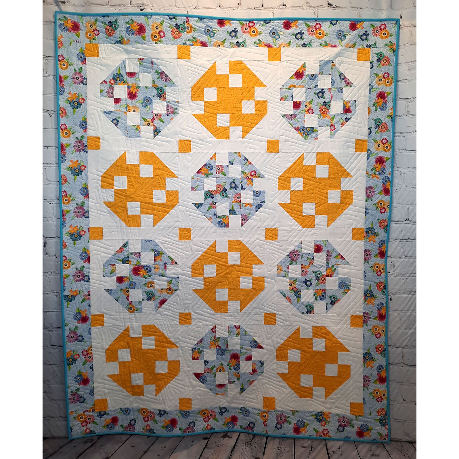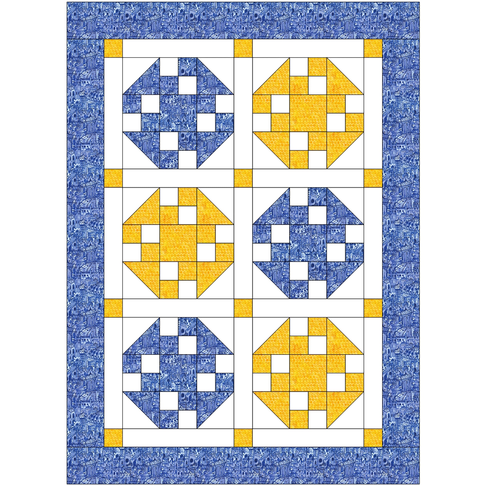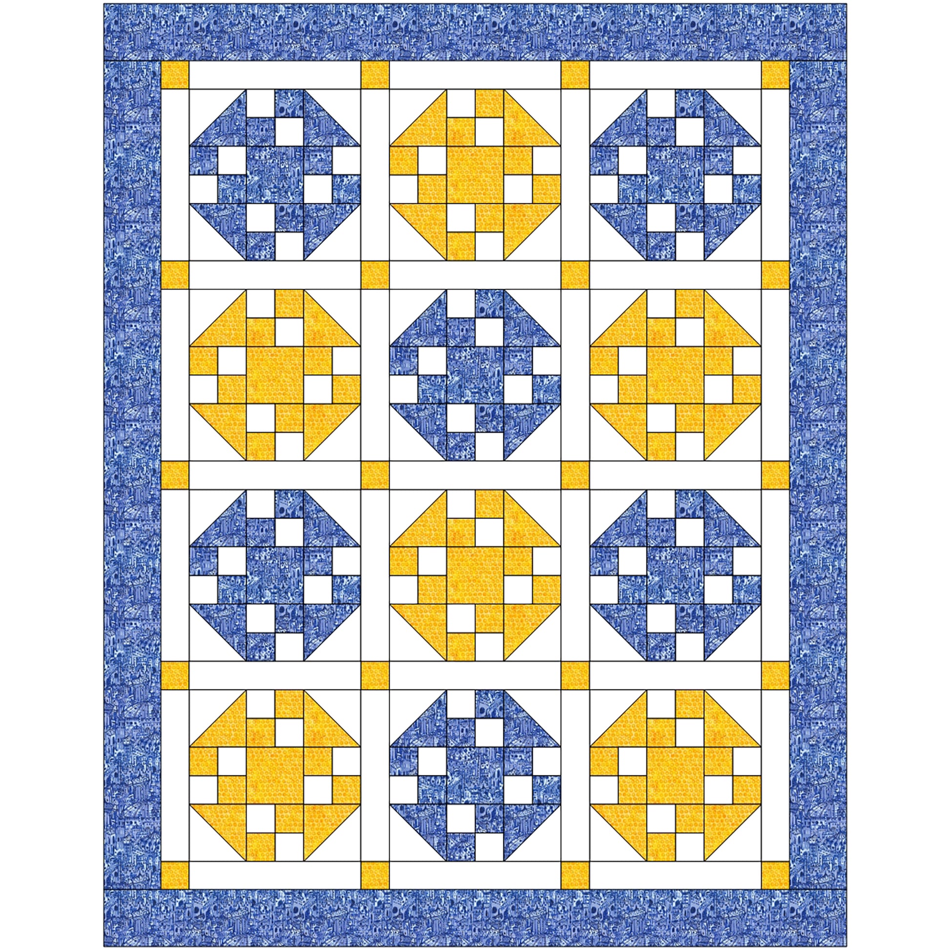 Simple Half square triangles and four patch blocks create prairie queen blocks that could look like twirling tumbleweeds! Quilt can be made with 8" QUBE set by Accuquilt. Rotary cutting directions are always included! Yardage for other QUBE sets also included; that's 24 SIZES!!