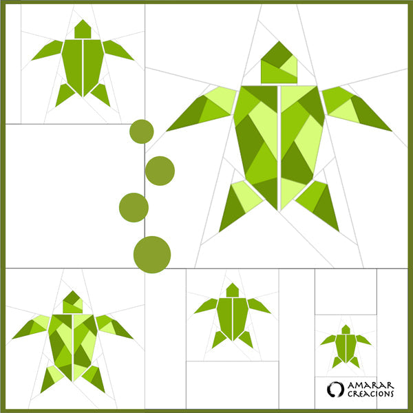 The Turtle - Origami Animals Collection is a Foundation Paper Piecing pattern that reproduces the figure of a turtle elaborated with the origami technique. It’s the 3rd pattern of the marine animals series of the collection, after the Fish and the Seahorse, and it’s followed by the Crab, the Whale and the Starfish. A pattern with a modern and casual style, with which you can create quilts, hanging quilts, pillows, bags and everything you can imagine.