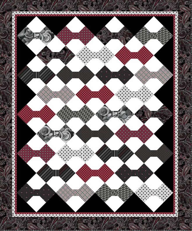 Take a selection of menswear-inspired prints, such as those in Northcott's Man About Town collection by Deborah Edwards, to make your guy a wall or lap quilt featuring 3-dimensional bow-ties. The Wall Street Wardrobe quilt pattern is for intermediate quilters.