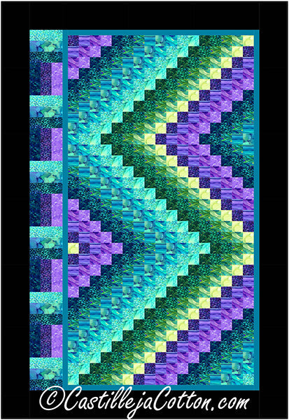 Bargello piecing technique quilt pattern using a pre-cut strip set. Fabric shown in the sample quilt is Northcott Fabrics Allure Sallur40-10