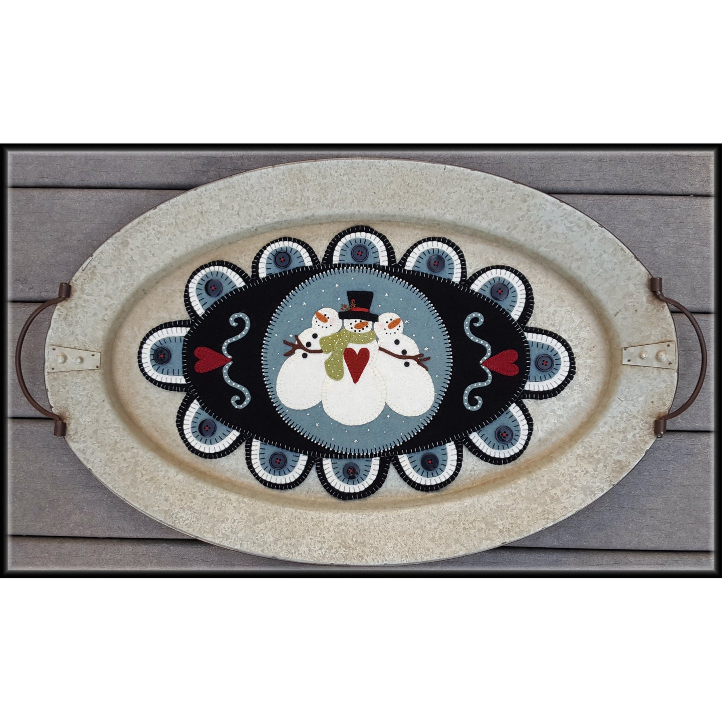 This charming table mat is so much fun to create and it fits perfectly into one of those rustic trays! Stitch it up using wool or wool felt. Finished piece measures 12 1/2" X 19 1/2". Display all winter long on your dining or coffee table!