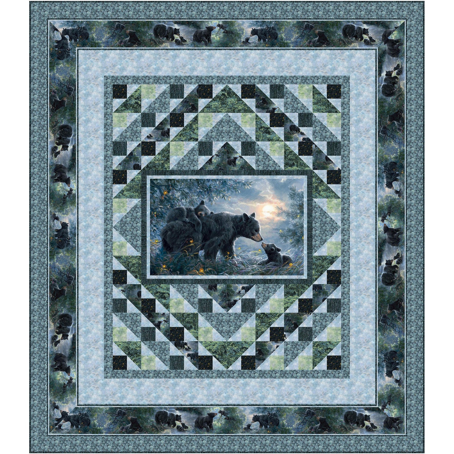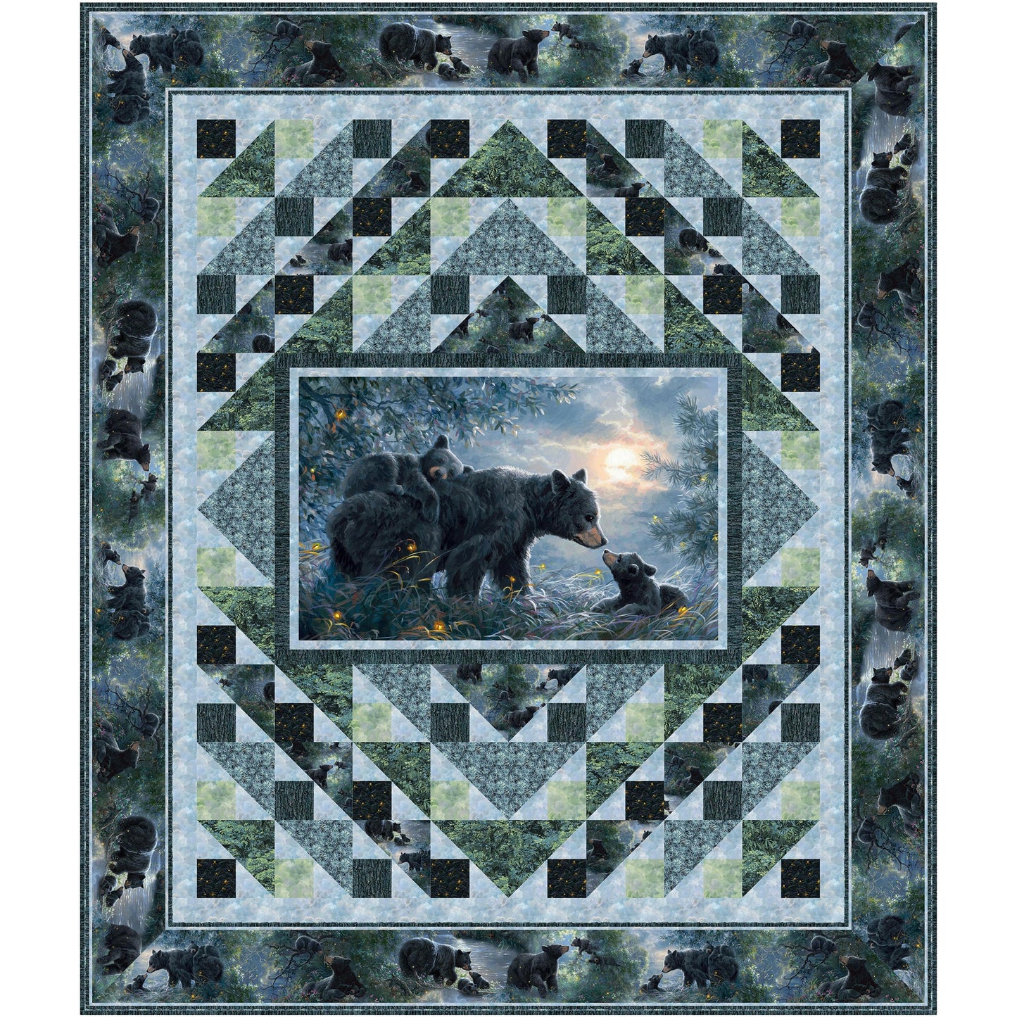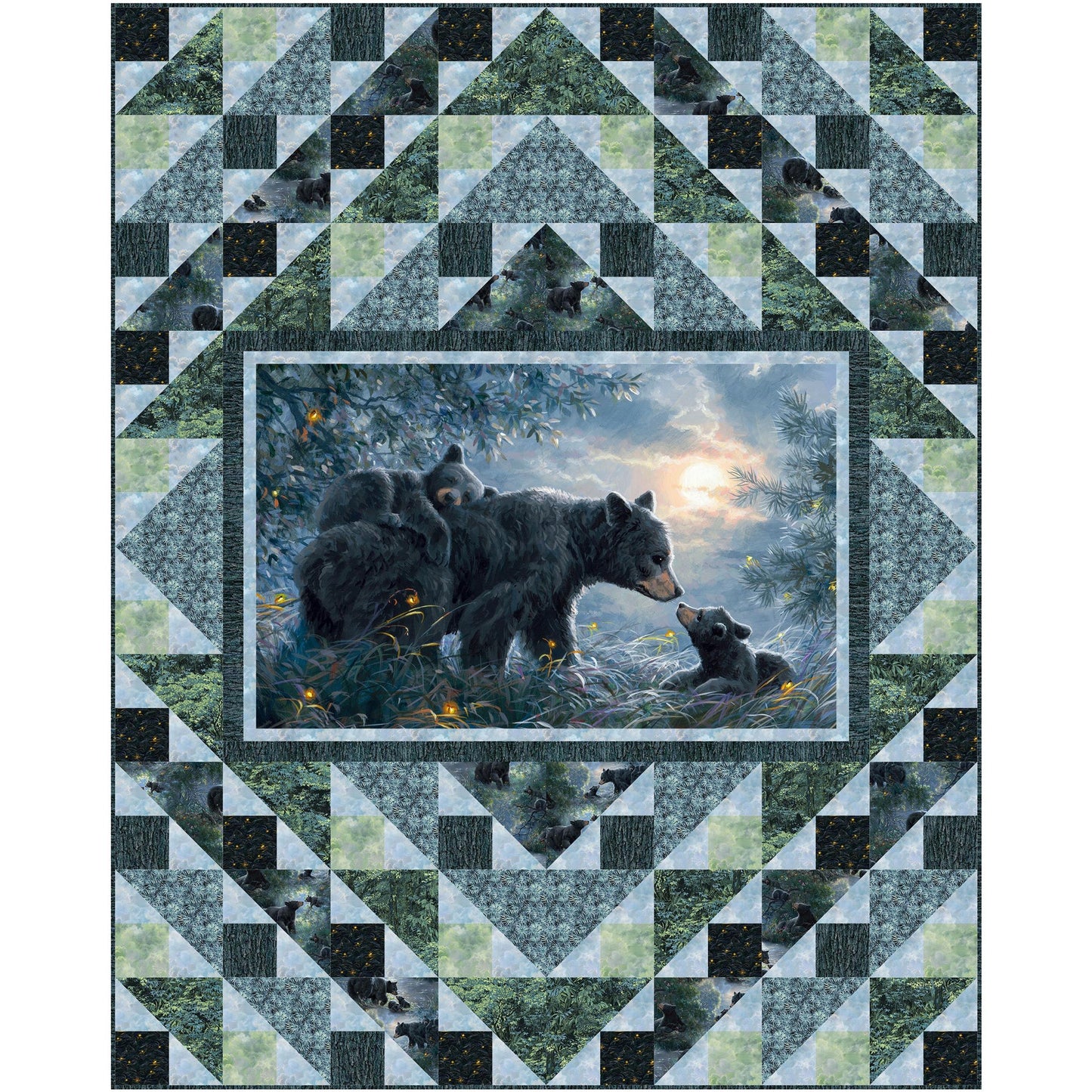 Beautiful quilt pattern using your favorite panel (min 25" x 39"). Changes to make 3 difference sizes so you can enjoy lots of your panels all over your home. Fabric shown in the sample quilt is Northcott's Moonlight Kisses collection.