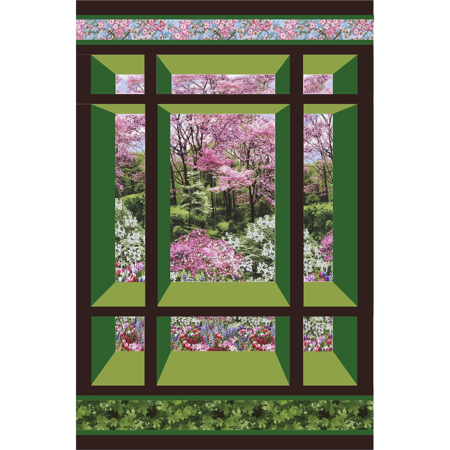 The Fall sample was made using the Nature fabric line and the Spring sample was made using the Botanic Garden fabric line, both by Timeless Treasures. The Mountain Meadow sample was made using the Nature Studies 2 fabric line by Robert Kaufman. The Asian sample was made using an older fabric line that is no longer available but many of the current Asian fabrics will work.