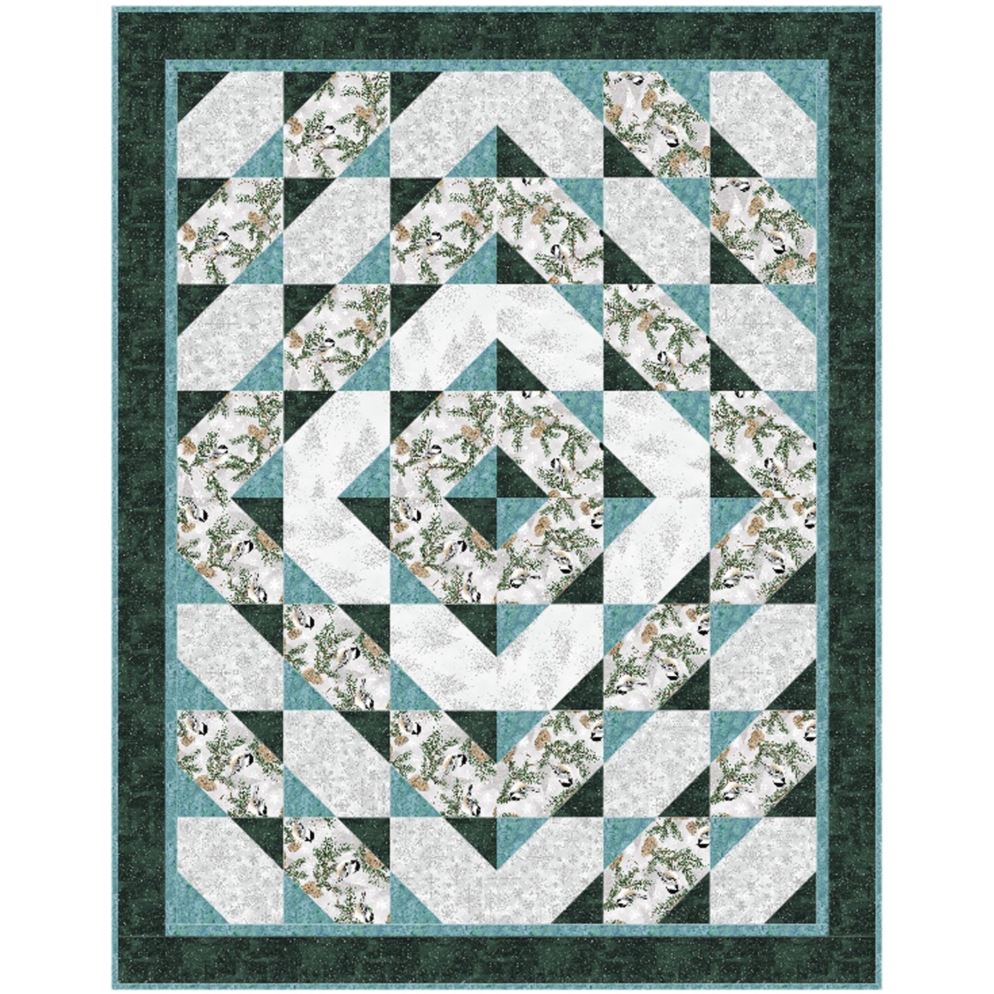 Winter Evening is a captivating quilt pattern inspired by the ethereal beauty of the "Winter's Eve" fabric line from Hoffman Fabrics (shown in example). This design captures the serene ambiance of a snowy evening, with shades of teal reminiscent of frost-kissed pine trees against a backdrop of Silver Frost. The quilt features easy blocks arranged in an interesting layout, inviting quilters of all skill levels to create their own masterpiece.